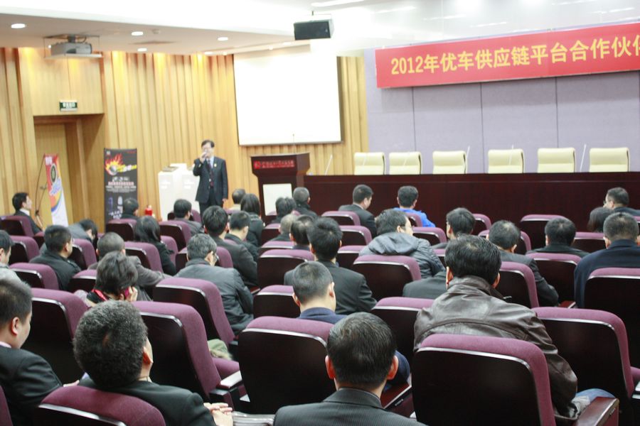 2月11日會議當天,共有潤東集團、福日集團、申蓉汽車、百事達汽車、東聯(lián)集團、華星北方、蕪湖亞夏、浙江和誠、常州外汽、康順汽車、大友集團、山西大昌、廣保豐田、上海寶朗等10余家汽銷集團(4S店),以及近30家用品廠商到場,會場氣氛濃郁,行業(yè)專家濟濟一堂。本次簽約儀式的主旨是將2011年11月招標會議的成果公諸于眾,為汽銷集團用品采購的規(guī)?;?、集約化、透明化提供極具操作性的、行之有效的模式和樣板,并將優(yōu)車供應鏈平臺著眼于裝飾業(yè)務提升的經(jīng)營理念,以及將于2012年開始推廣的4S店裝飾業(yè)務深度培訓服務,面向與眾多與會的汽銷集團、產(chǎn)品廠商、行業(yè)媒體進行介紹。中華全國工商業(yè)聯(lián)合會汽車經(jīng)銷商商會(CADCC)秘書長韓峰首先進行了致辭,為CADCC優(yōu)車供應鏈平臺2011年的成功運作進行了祝賀,隨后對這種開創(chuàng)行業(yè)格局的新模式表示了認可與冀待,這也喻示著優(yōu)車這種領先中國汽車后市場的供應鏈體系將在不遠的將來成為行業(yè)標桿。優(yōu)車公司總裁石磊就中國汽車經(jīng)銷商發(fā)展進入新時代為楔子,深入剖析了汽車經(jīng)銷商集團精品營銷面臨的內憂和外患,并介紹了優(yōu)車為之提供的管理咨詢、培訓、供應鏈、整合營銷等多角度、多層面的系統(tǒng)解決方案,得到了行業(yè)人士的熱烈反應。