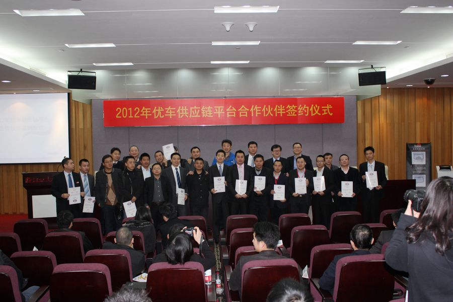 值此眾多汽銷集團、用品廠商和行業(yè)媒體齊聚一堂之際,應九州國際之邀,2012年優(yōu)車供應鏈平臺招標簽約儀式于2月11日上午在琶洲會場舉行。優(yōu)車公司由石磊總裁牽頭,率采購、營銷、培訓等骨干團隊成員,全力投入簽約儀式安排之中,廣邀業(yè)內專家、朋友、賓客,赴會觀摩、共襄盛舉!2011年是優(yōu)車快速發(fā)展的一年,當年11月份優(yōu)車公司聯(lián)合潤東、申蓉、福日、百事達四集團組成聯(lián)合集采委員會,并在重慶舉行了委員會的首次產(chǎn)品招標會議。通過11月份的招標,委員會篩選出一批廠家入圍,更為重要的是,各集團還深度地交流了汽車裝飾業(yè)務的經(jīng)營管理經(jīng)驗,為實現(xiàn)共同提升打下了良好的開端。