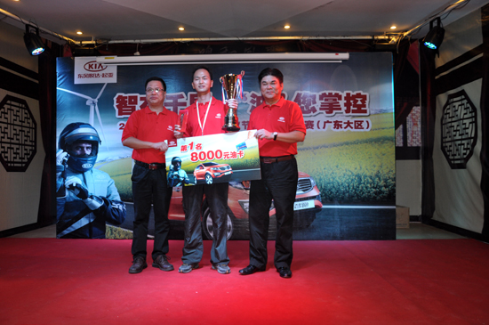 各車手的成績(jī)?cè)诋?dāng)晚頒獎(jiǎng)晚宴中統(tǒng)一公布上,獲得本次活動(dòng)的冠軍,為來(lái)自的揭陽(yáng)的孫楚旭,參賽車型智跑,他的成績(jī)?yōu)榘俟镉秃?.188L;獲得亞軍的有2名:分別是:來(lái)自中山的朱美江 ,參賽車型智跑,百公里油耗:5.390L;和來(lái)自珠海的潘光富, 參賽車型智跑,百公里油耗:5.390L;季軍為一輛獅跑車型,為來(lái)自廣州的肖浩川 ,他的成績(jī)是 百公里油耗:5.709L.