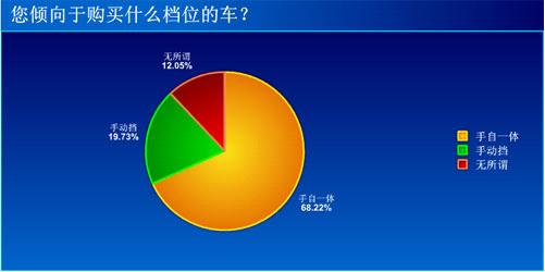 在檔位選擇的調查中,有69.68%的網友選擇了手自一體,小編分析當中主要原因是因為全新朗逸的用戶群主要集中在一些道路比較擁堵的一線城市中,自動擋車型在上下班高峰時段駕駛起來會比手動擋更加輕松。并且全新朗逸配備的6速自動與7速DSG兩款自動變速箱在油耗方面也有著不輸給手動變速箱的表現。